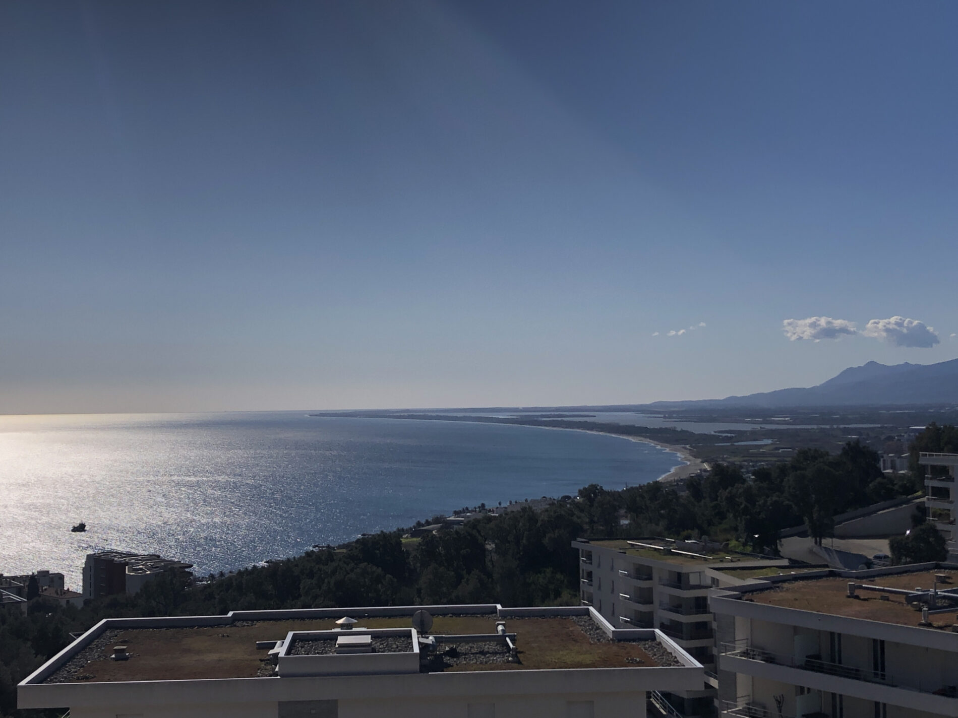 Belle terrasse avec vue sur la mer et l’étang de Biguglia.